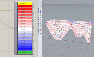 The next part of the project was to test the centre piece using the Grasshopper plugin Karamba, so that I was able to learn what the structure was capable of realistically in terms of the affect of gravity, loads and how much weight it could withstand.